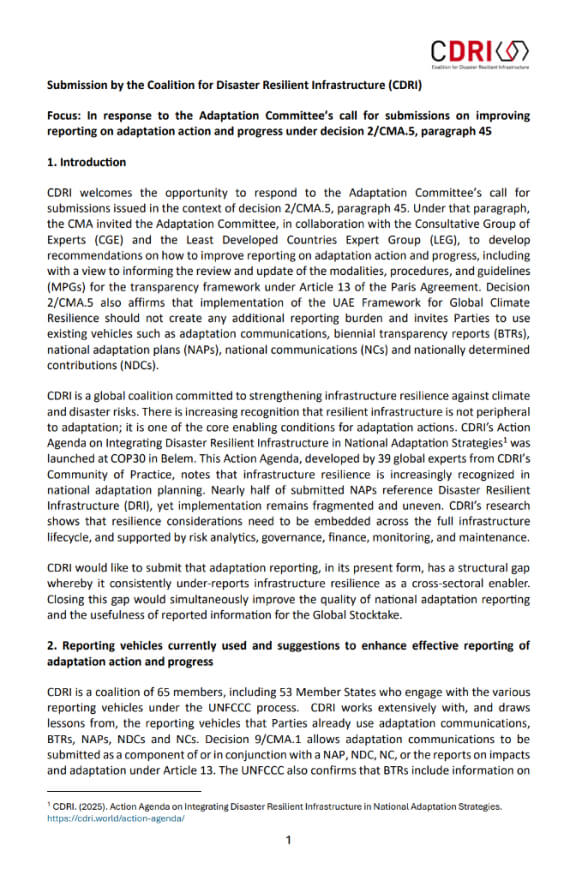 As a centre of excellence for technical expertise and policy insights, CDRI strengthens partnerships, drives innovation, and establishes itself as a thought leader in sustainable and resilient infrastructure development.