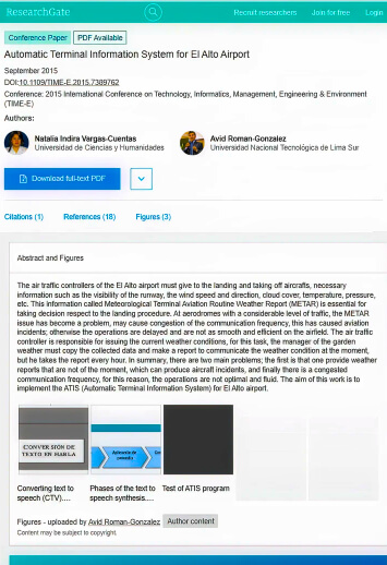 Página de inicio Vargas-Cuentas, N. I., & Román-González, A. (2015). Automatic Terminal Information System for El Alto Airport.Journal of Engineering Science, 5(3), 1-10