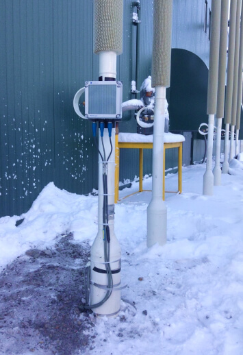- The construction of the new terminal and services building there was a concern regarding the permafrost thaw underneath. The construction project installed passive thermosyphons which circulate cool air and maintain the frozen state of the ground. To monitor the effectiveness of the syphons a comprehensive temperature monitoring solution was implemented. Digital temperature cables with multiple sensors were