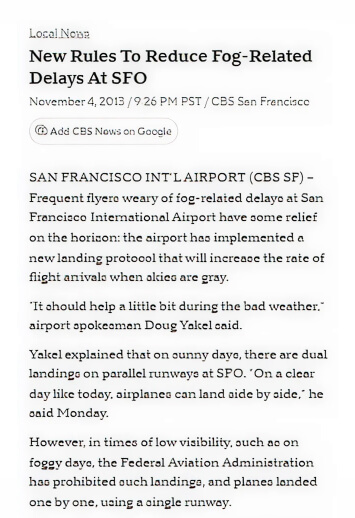 To address these challenges, San Francisco International Airport (SFO) has implemented several measures. Advanced Instrument Landing Systems (ILS) provide precise guidance to pilots, allowing aircraft to land safely even in low-visibility conditions. Enhanced runway lighting aids pilots in navigating during foggy conditions, making it easier to land and take off safely. Sophisticated weather monitoring tools predict fog and adjust flight schedules, accordingly, helping to plan and minimize disruptions. Additionally, Collaborative Decision Making (CDM) involves coordination between airlines, air traffic control, and airport operations to manage delays and ensure efficient flight operations during foggy periods.